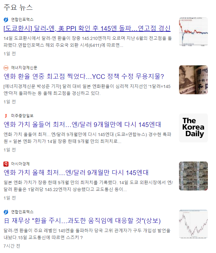 뉴스를 찾아봐도 엔화 가치가 최저라는 소식들 뿐이다.